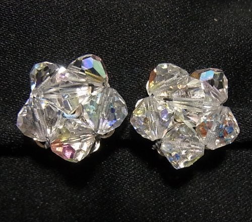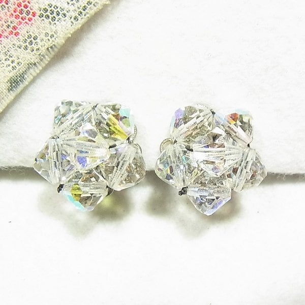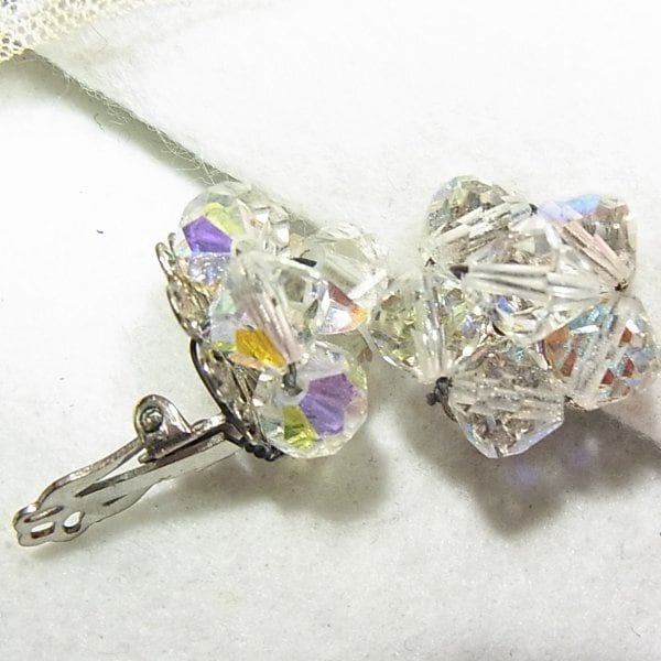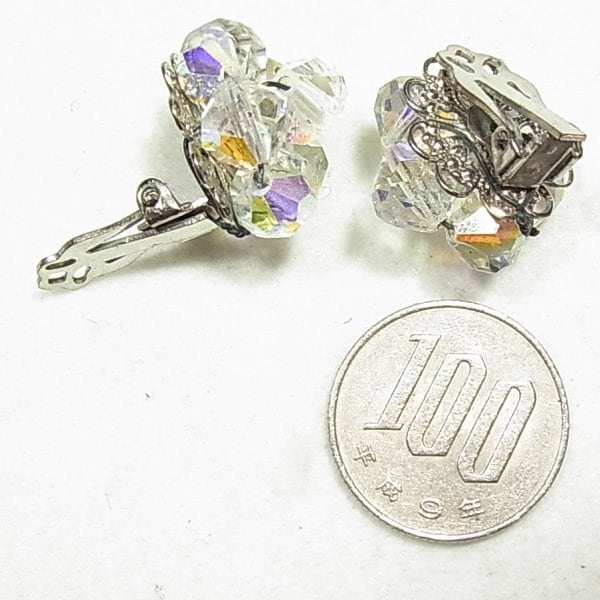 ●1960s ●クリップ式イヤリング ●クリアなガラスビーズのクラスターイヤリング シルバートーンのメタル きれいです ◆年代は当店の推定です。 ◆この商品は、古い時代のビンテージアイテムです。