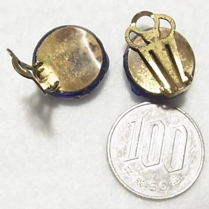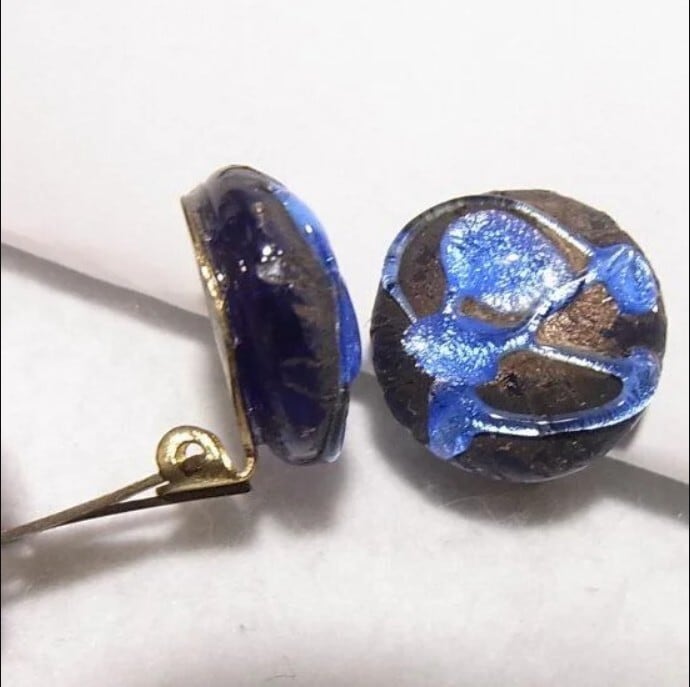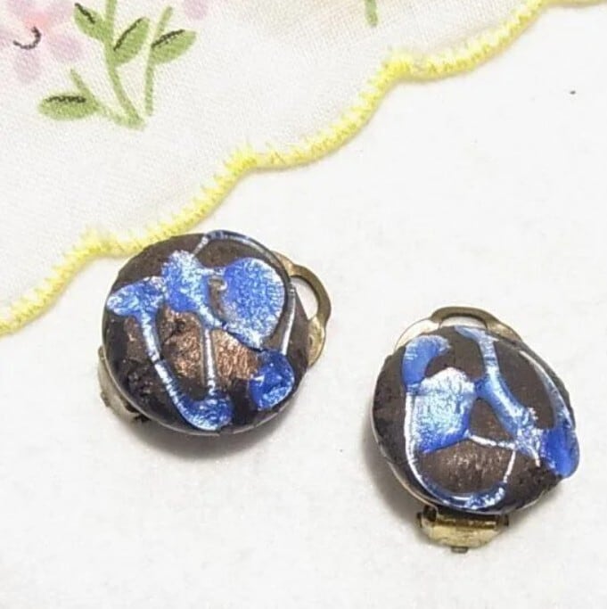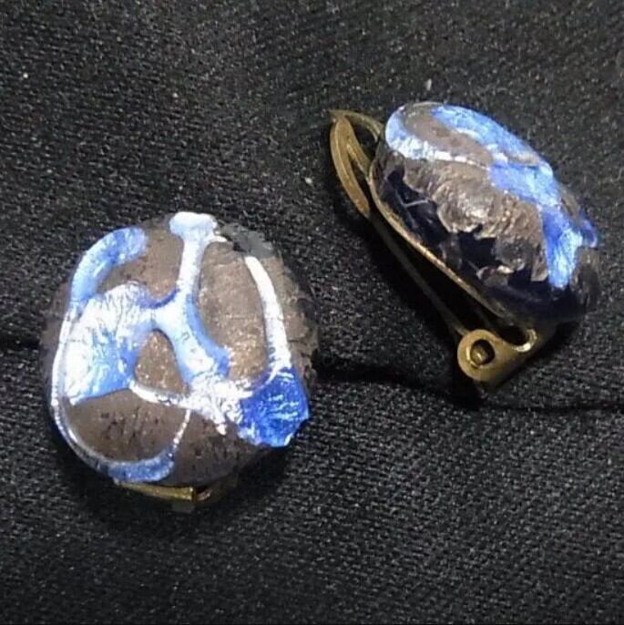 ブルーのまだらガラスのイヤリング ヴィンテージクリップイヤリングのセール通販 10490E