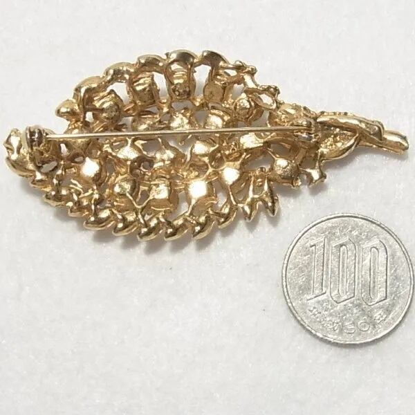 ラインストーンのリーフ・フラワーブローチ ヴィンテージアクセサリー のセール通販 11635B