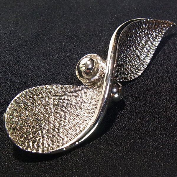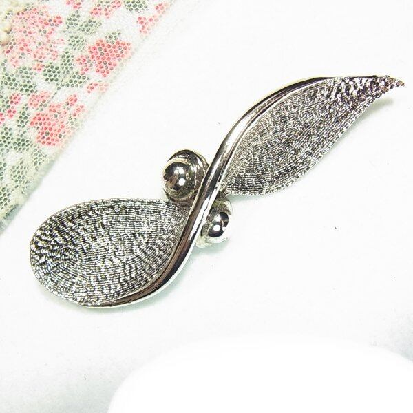 ●1970s ●リーフブローチ シルバートーンのメタル製 清楚でオシャレ、きれいなアイテムです ◆年代は当店の推定です。 ◆この商品は、古い時代のビンテージアイテムです。