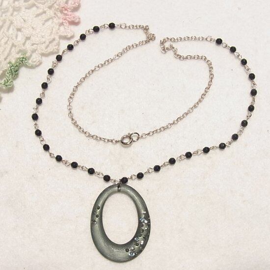 チェーンに黒いプラスティックビーズ