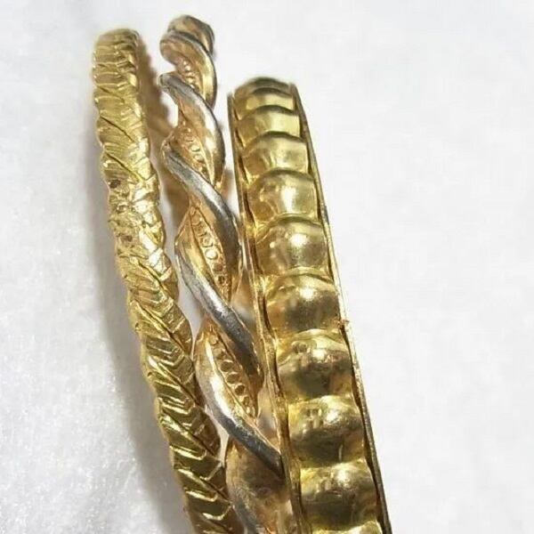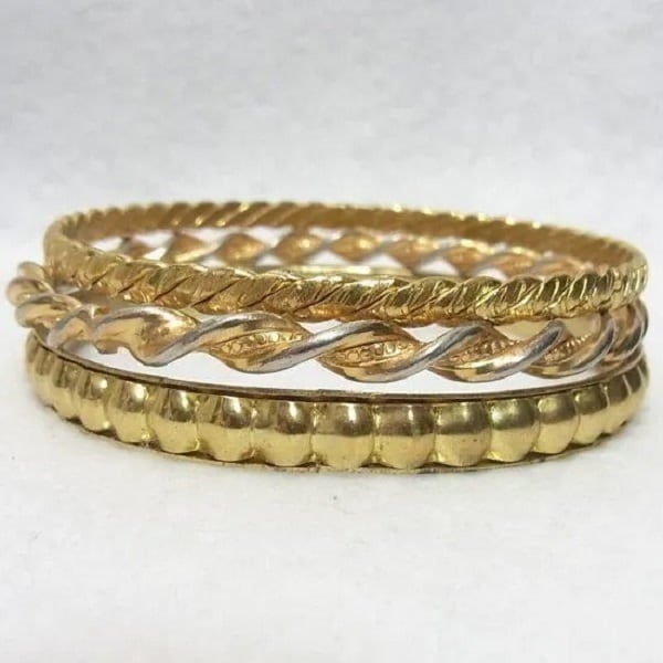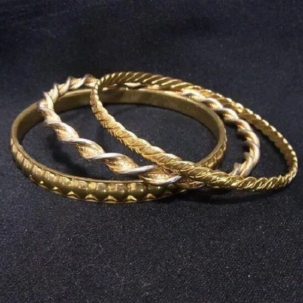 ●1970-80s ●バングルブレスレット3個セット ゴールドトーンのメタル製 内径6.7cm きれいです ◆年代は当店の推定です。 ◆この商品は、古い時代のビンテージアイテムです。