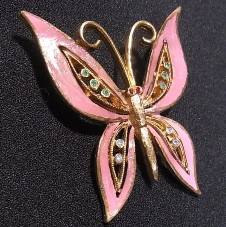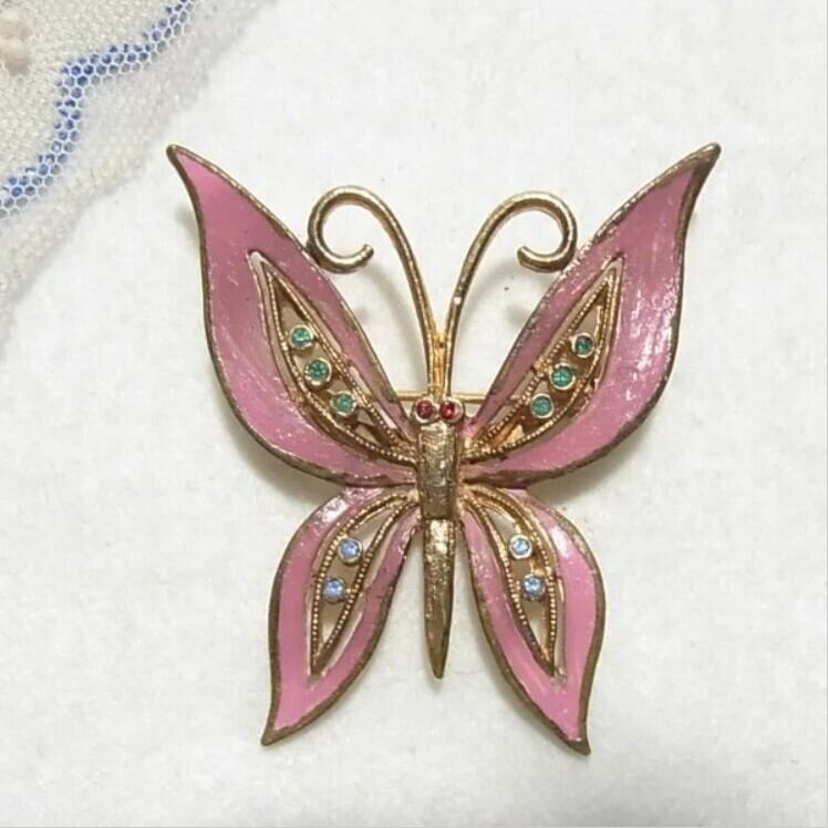 ピンクの蝶々のブローチ ヴィンテージブローチのセール通販 10399B