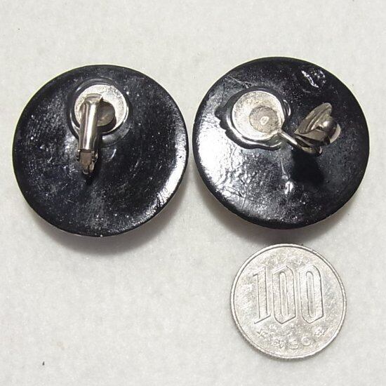 ●2000s ●軽いウッド製ドームイヤリング ハンドペイント シルバートーンのメタル金具 不思議な柄のユニークなアイテムです ◆年代は当店の推定です。
