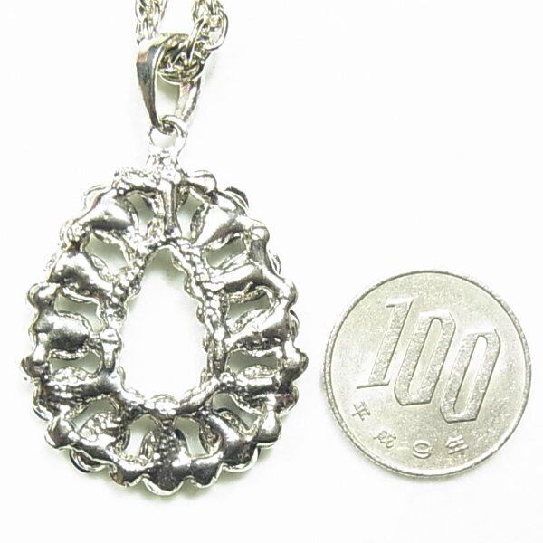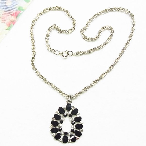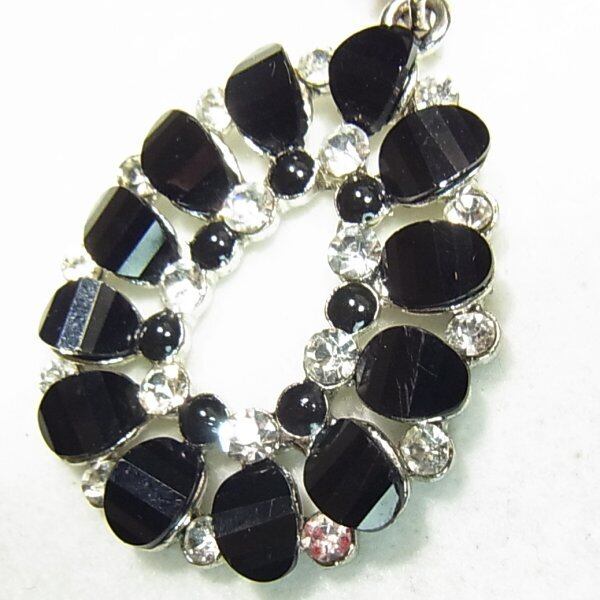 ●1990-2000s ●ティアドロップペンダントネックレス 黒とクリアのラインストーン シルバートーンのメタル製 46cmチェーン きれいなオールドストック品 ◆年代は当店の推定です。