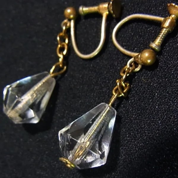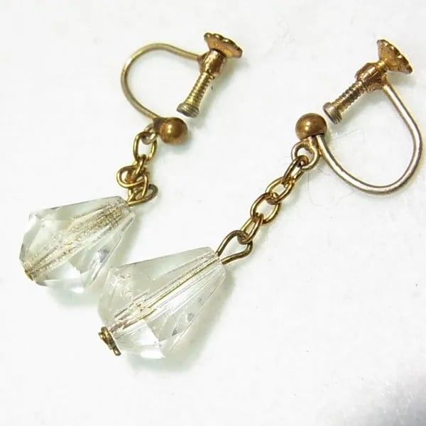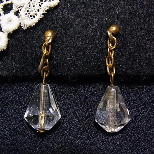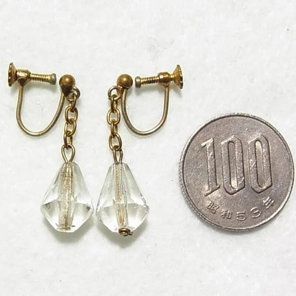 クリアガラスビーズの下がるイヤリング ヴィンテージアクセサリーのセール通販 11670E