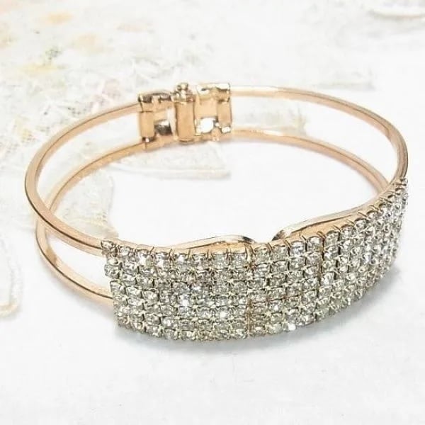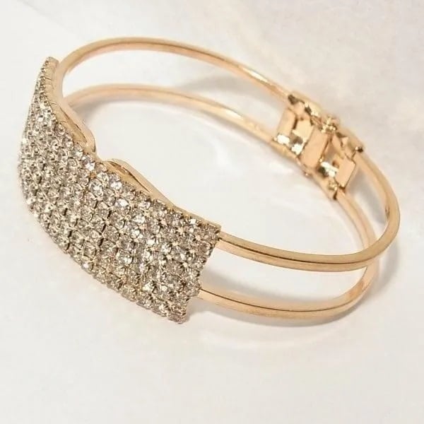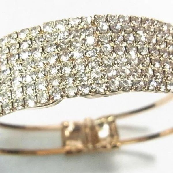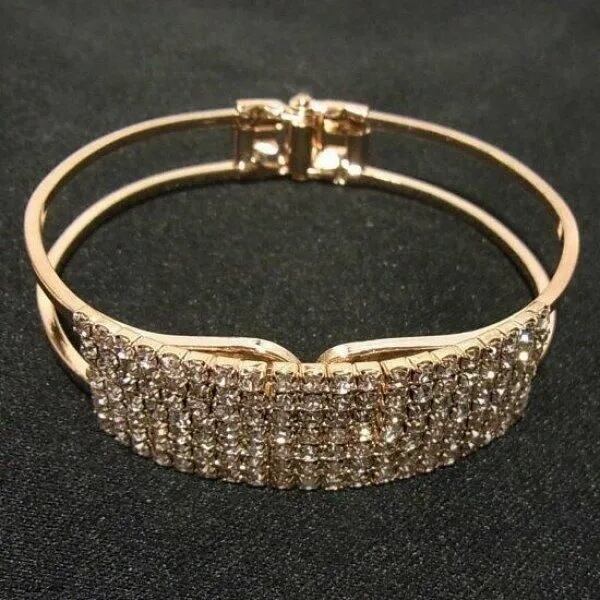 ●新品 ●クリアなラインストーンのクランパーブレスレット 石は爪留め ゴールドトーンのメタル製 標準的な女性サイズです ゴージャス、エレガント!!