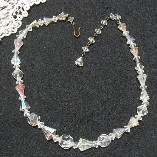 クリアガラスのビーズネックレス ヴィンテージネックレスのセール通販 10600N
