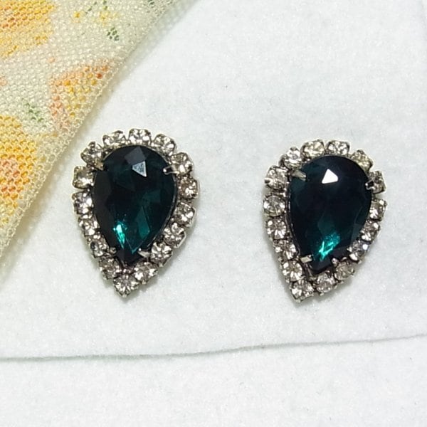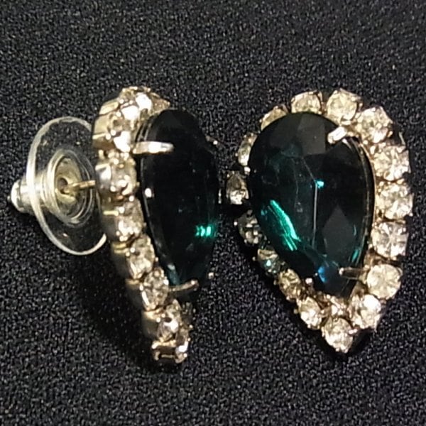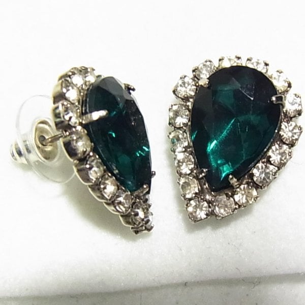 グリーンラインストーンのピアス コスチュームジュエリーのセール通販 10771P