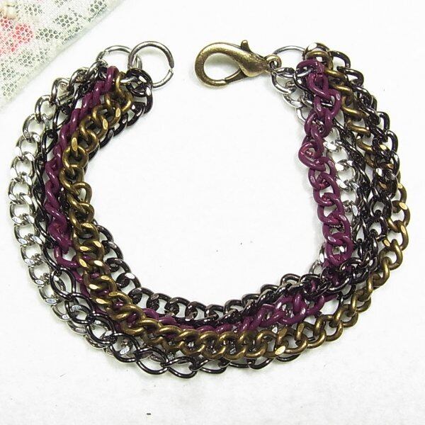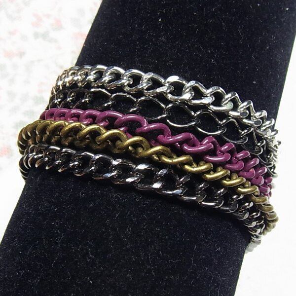 ●2000s ●マルチカラーのチェーン6連ブレスレット 個性的なボリュームブレスレット 標準液な長さです ◆年代は当店の推定です。