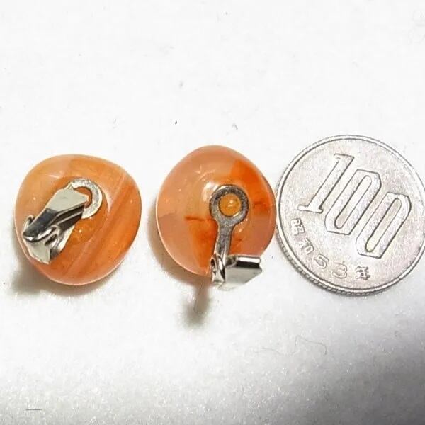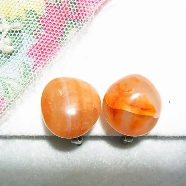 ●1990s ●クリップ式イヤリング ●天然石、カーネリアン(瑪瑙)のイヤリング シルバートーンのメタル金具 ◆年代は当店の推定です。
