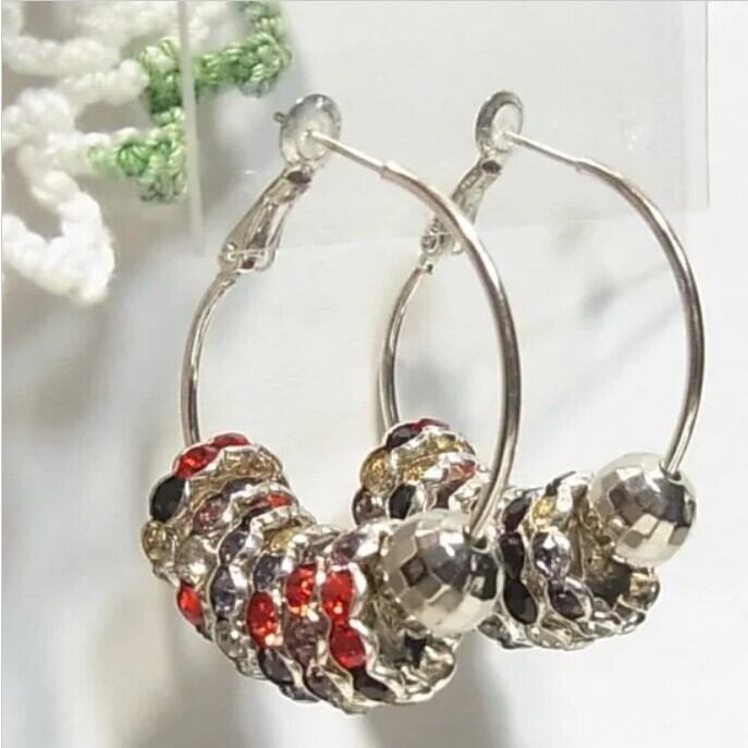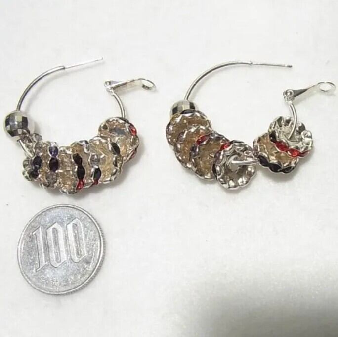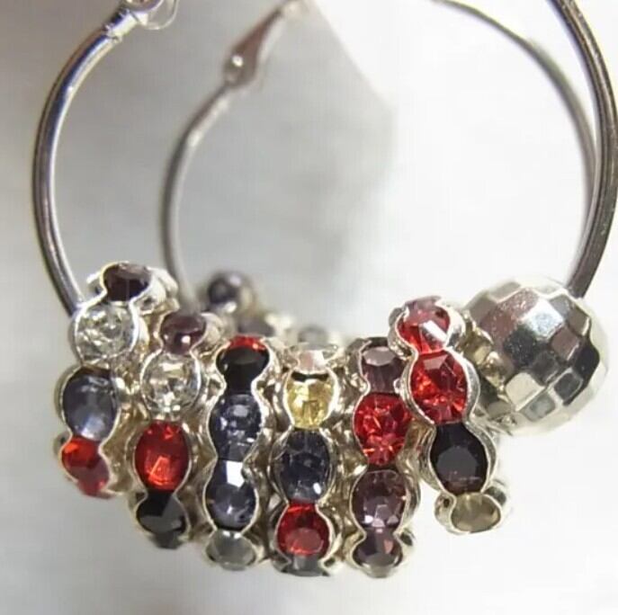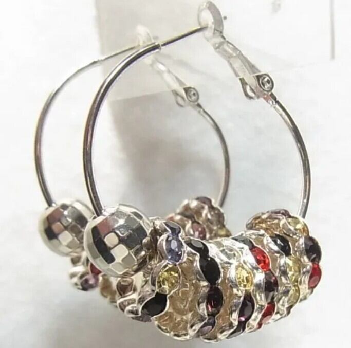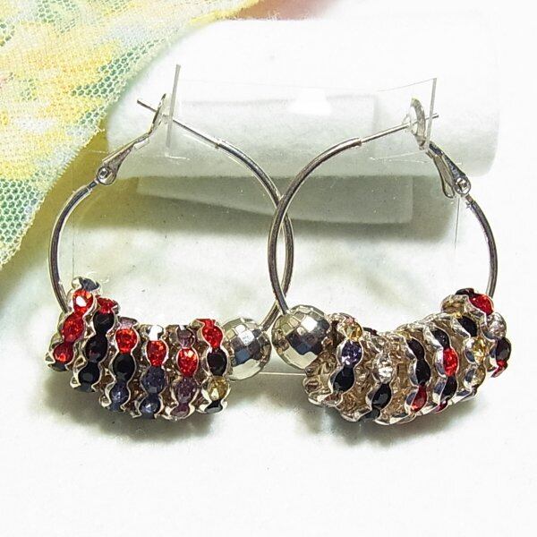 ●オールドストック新品 ●フープピアス カラフルラインストーン シルバートーンのメタル エレガントなアイテム アレルギー対応はしておりません。