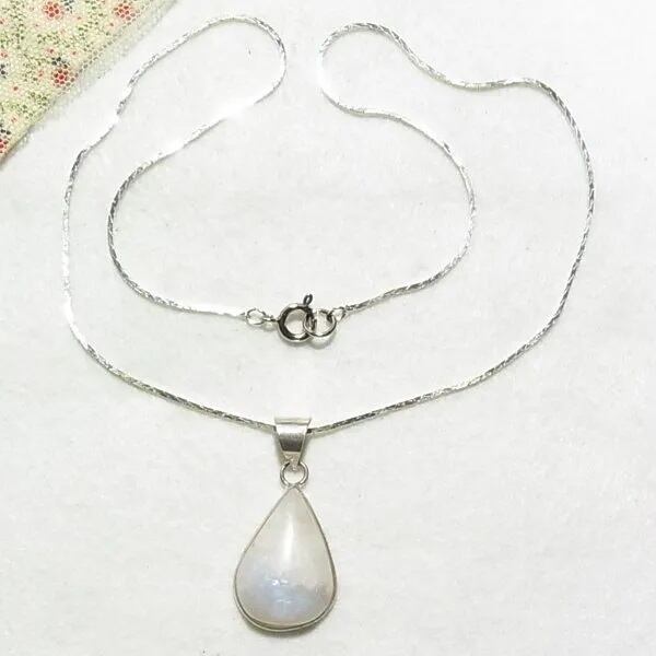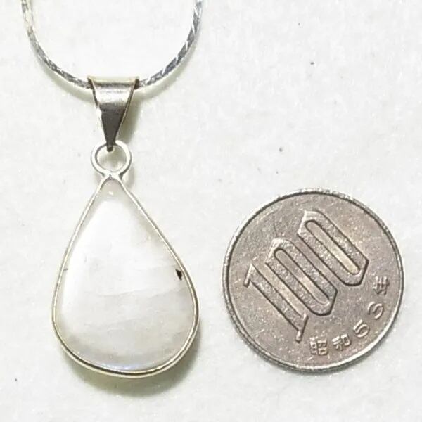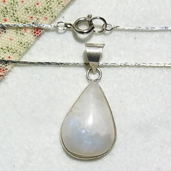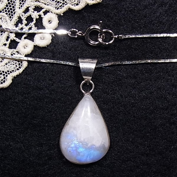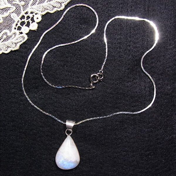 ● 新品 ● 天然石、ムーンストーンのペンダントネックレス 見る角度により幻想的なブルーに輝く個性的な石です シルバートーンのメタル台とチェーン 45cmチェーン