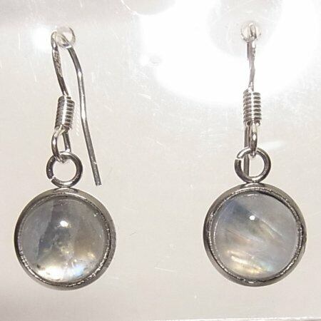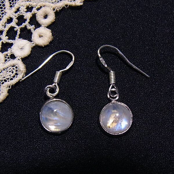 ●天然石の下がるピアス ムーンストーンのカボションの石 シルバー925のフックを使用 8mm径の石 フック以外はステンレス製 ●刻印:925(ピアスフックに刻印)