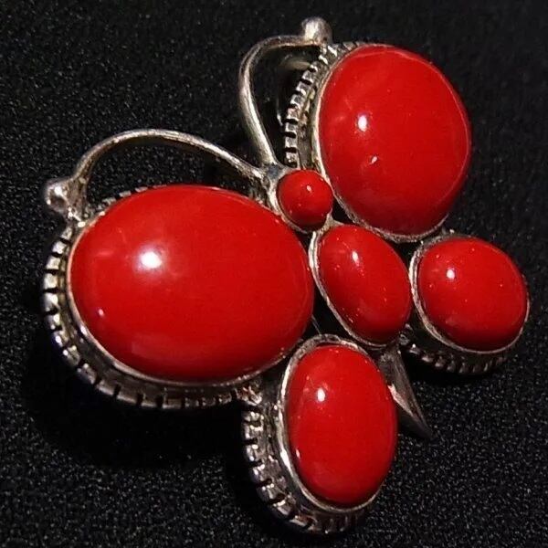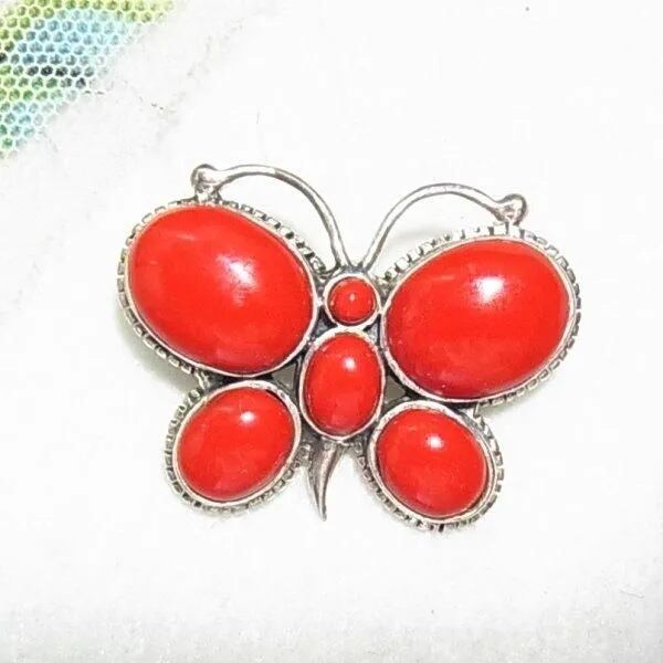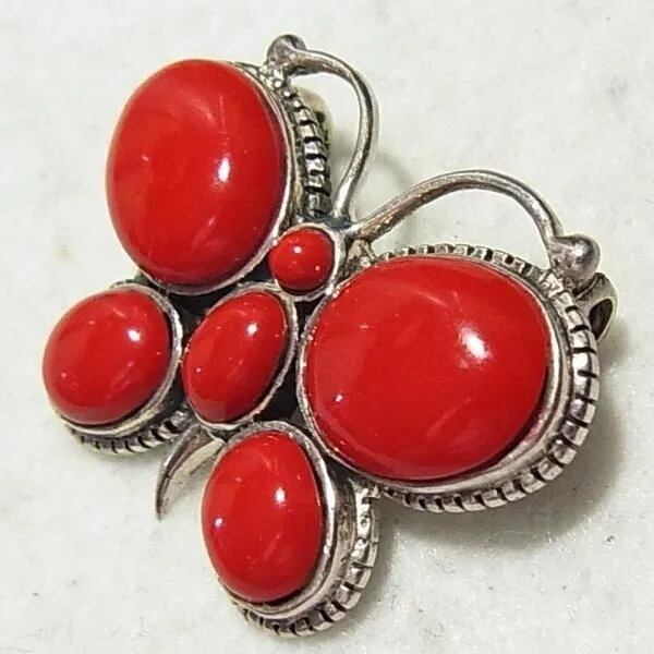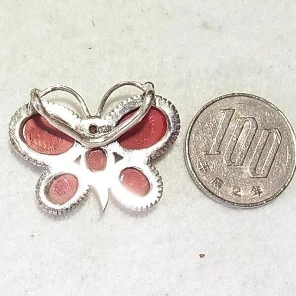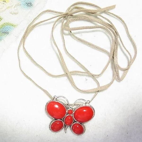 ●1990s ●刻印:925 ●シルバー925製、蝶々のペンダントトップ 赤珊瑚の石 重さ7.5グラム スウェードのヒモ付き ◆この商品は、古い時代のビンテージアイテムです。