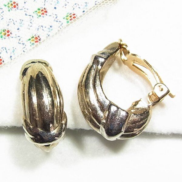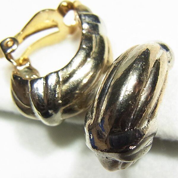 ●2000s ●クリップ式イヤリング ●金と銀の中間色メタルのフープイヤリング スタイリッシュできれいなアイテム ◆年代は当店の推定です。