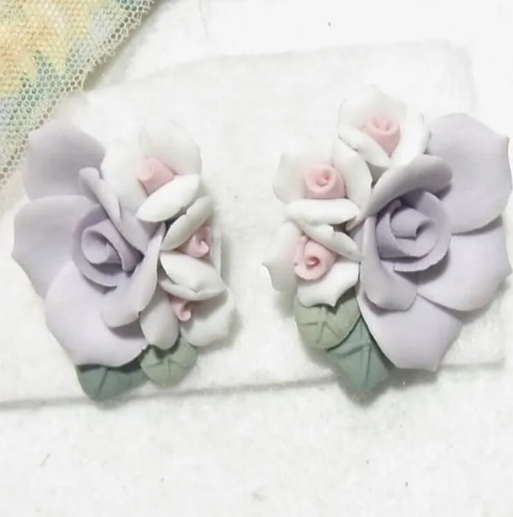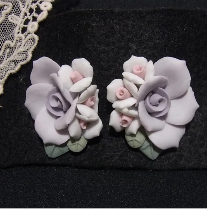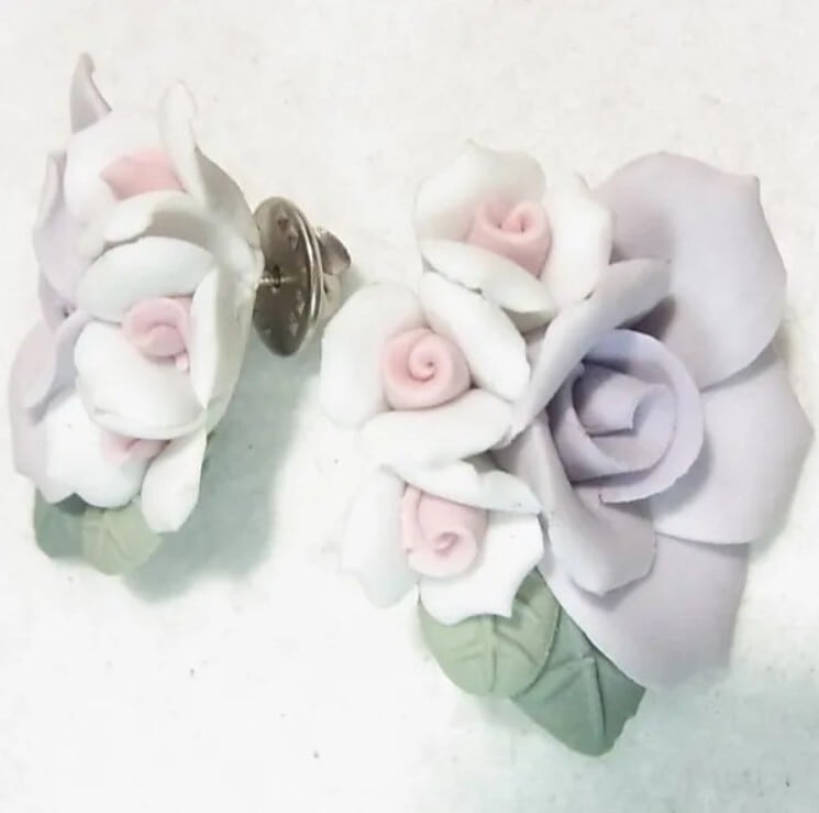 ●オールドストック新品 ●陶器製フラワーブローチ(ピンズ式)2個セット 清楚な良いムード、きれいです