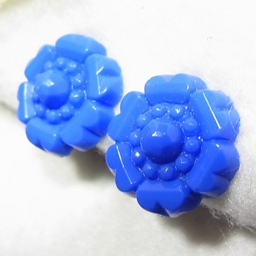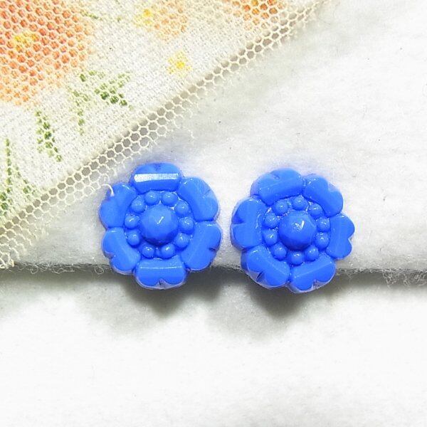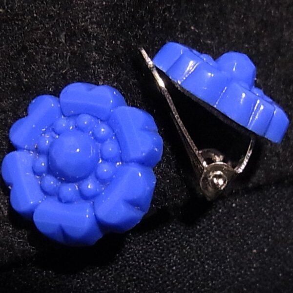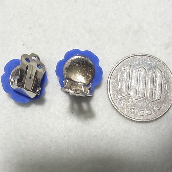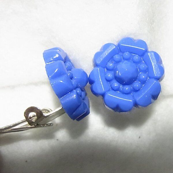 ブルーのチェコガラスの花型イヤリング クリップ式イヤリングのセール通販 10447E
