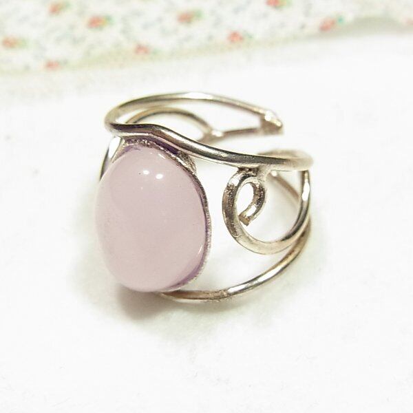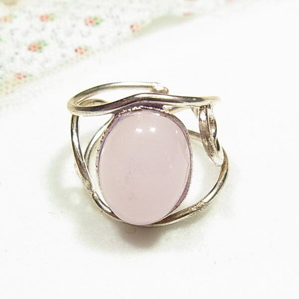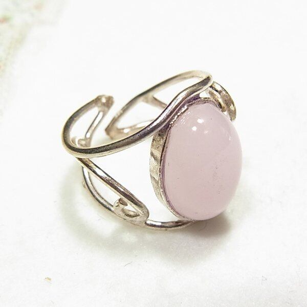 ●新品 ●ローズクォーツのリング シルバートーンのメタル台 石の大きさ: 1 x 1.4cm ●サイズ:フリー(アジャスタブル)