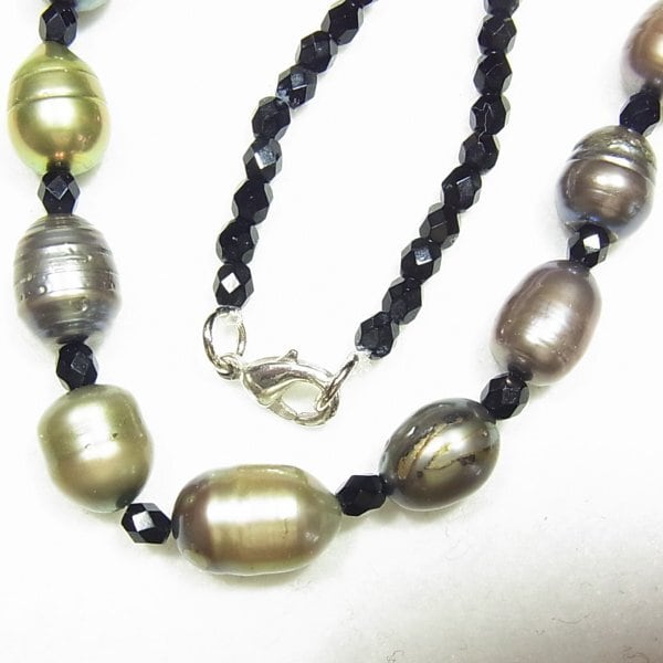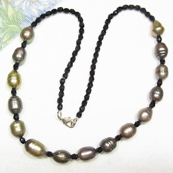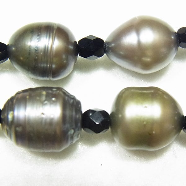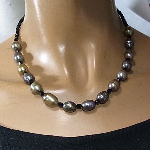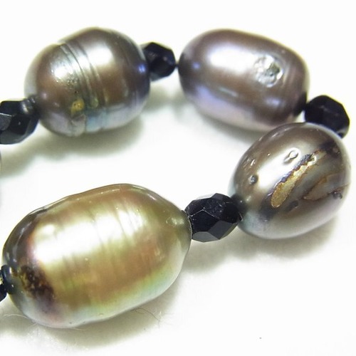 ●オールドストック新品 ●サークル珠の淡水真珠(バロックパール)ネックレス グレーの真珠 黒いガラスビーズ 47cm ハイエンドのアイテム、きれいです