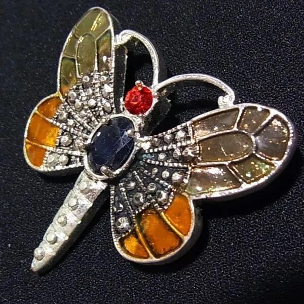 ●オールドストック新品 ●エナメルの蝶々のブローチ 赤と黒のラインストーン シルバートーンのメタル製 気品あふれるオシャレなアイテムです