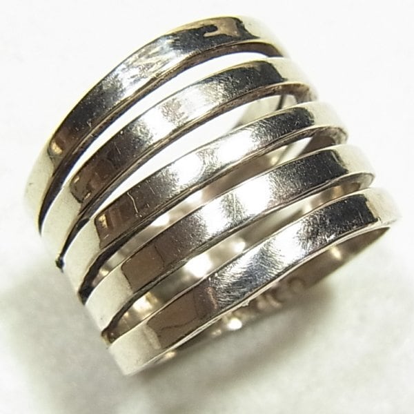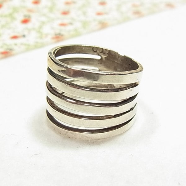 ●1990s ●刻印:(MEX)ICO メキシコ製ですがMEXの部分が消えています ●シルバー製 横ラインの幅広デザインのリング がっしり堅固なタイプ 重さ:6グラム ●サイズ:9