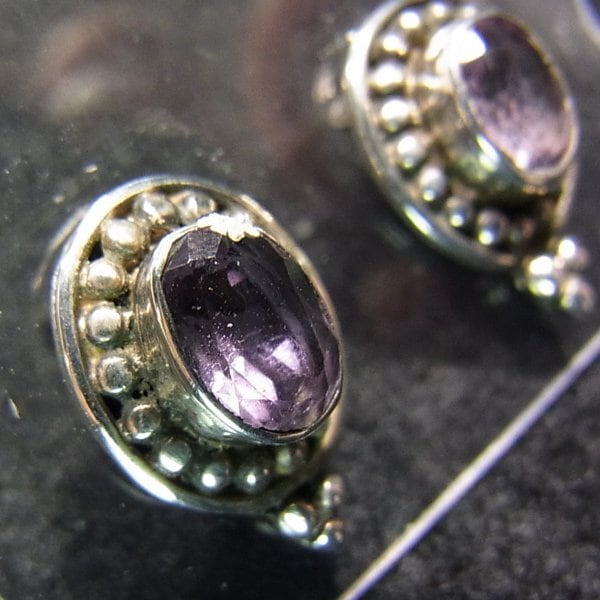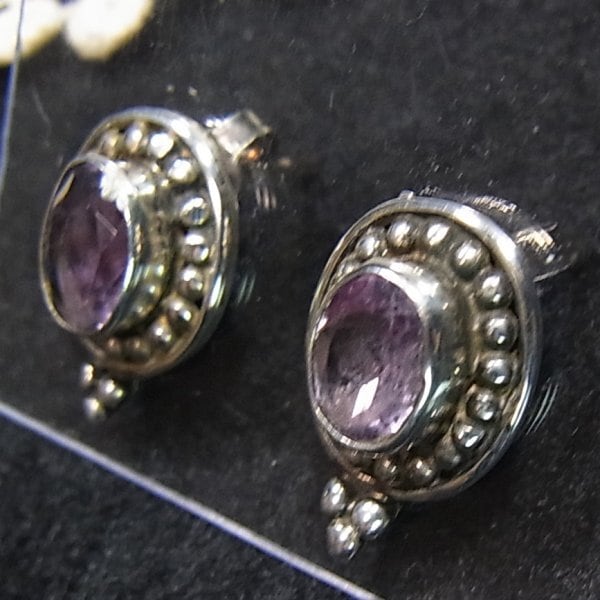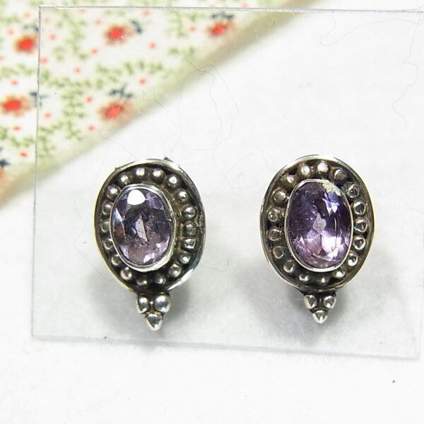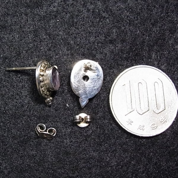 ●1990s ●刻印:925 ●シルバー925製 アメジストの付いたエスニックデザインのピアス 重さ:3.5グラム