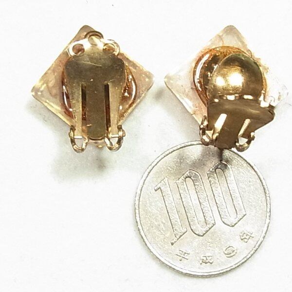 ●1980s ●クリップ式イヤリング ●ゴールドトーンのメタル製四角いイヤリング ◆年代は当店の推定です。 ◆この商品は、古い時代のビンテージアイテムです。