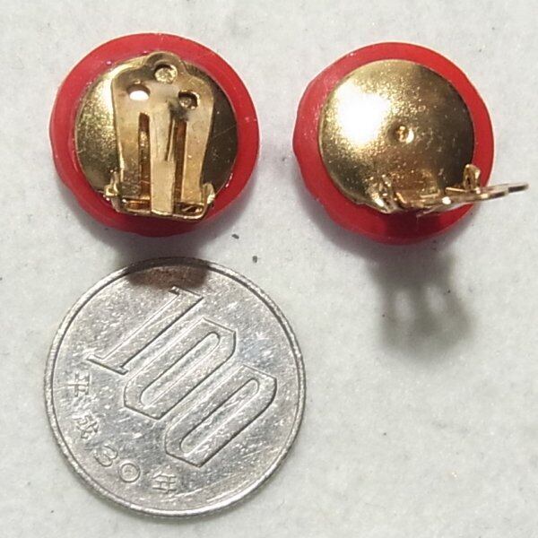 赤いチェコガラスのラウンドイヤリング クリップ式イヤリングのセール通販 コスチュームジュエリーのセール通販 10459E