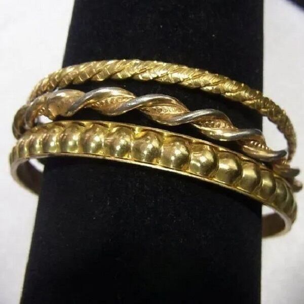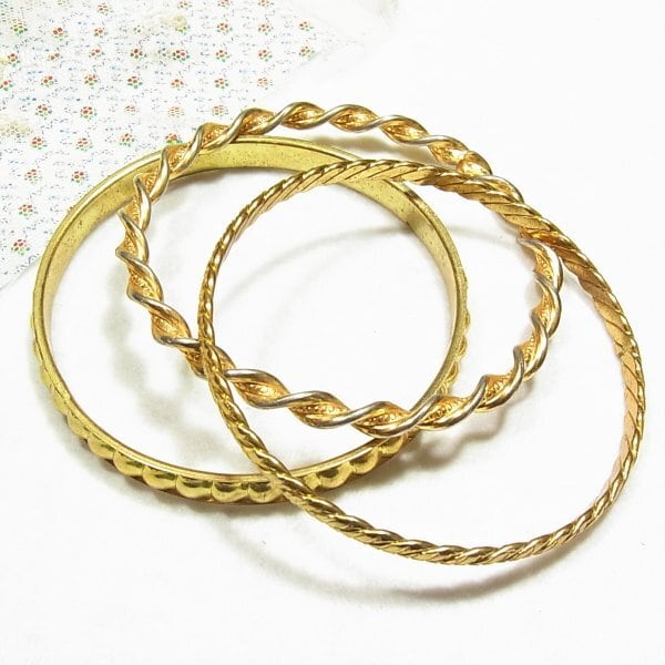 ●1970-80s ●バングルブレスレット3個セット ゴールドトーンのメタル製 内径6.7cm きれいです ◆年代は当店の推定です。 ◆この商品は、古い時代のビンテージアイテムです。