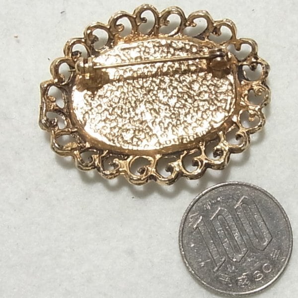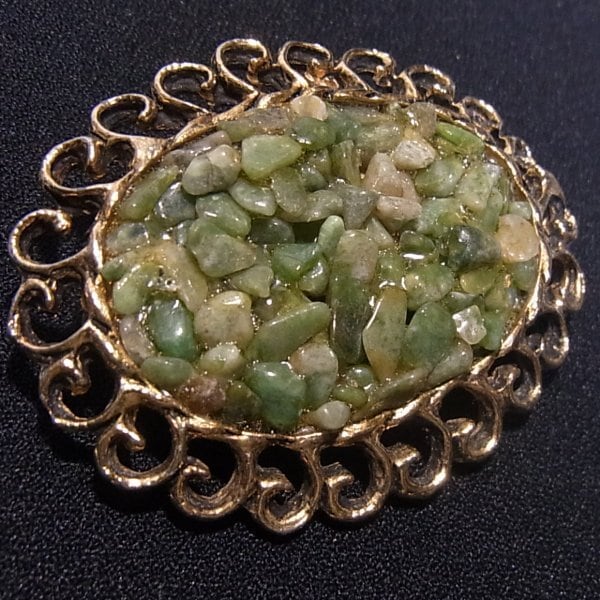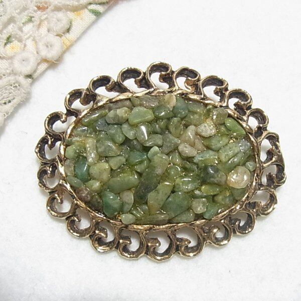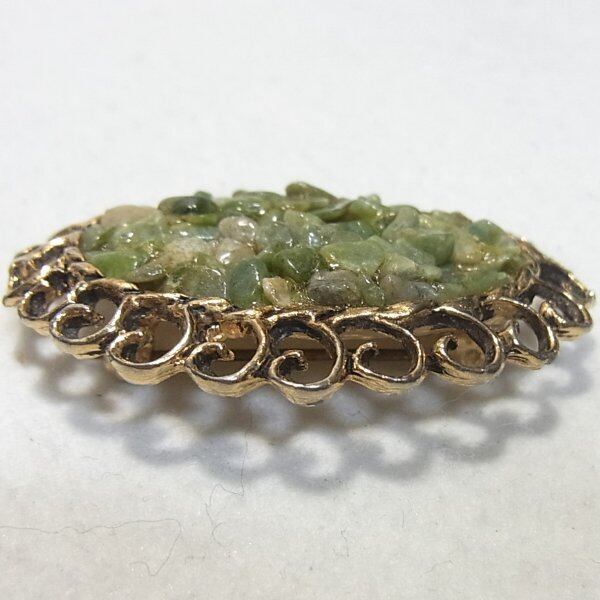 ヒスイのかけらを埋め込んだオーバルブローチ ヴィンテージブローチのセール通販 10099B