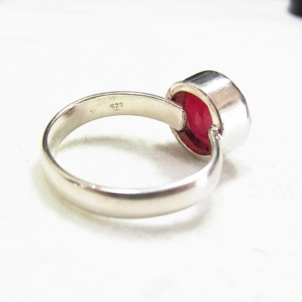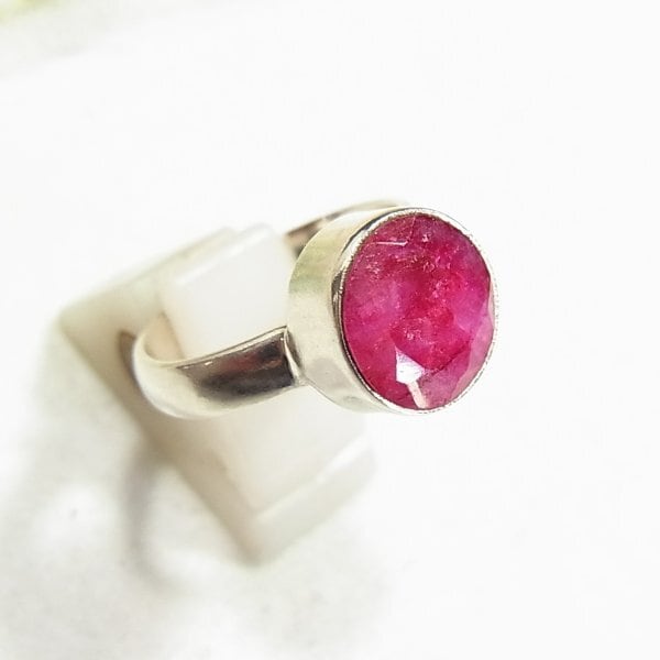 ●新品 ●刻印: 925 ●シルバー925製 薄くカットを施したルビーの原石リング 4 グラム 石を含めた正面サイズ1.1cm ●サイズ:アジャスタブル