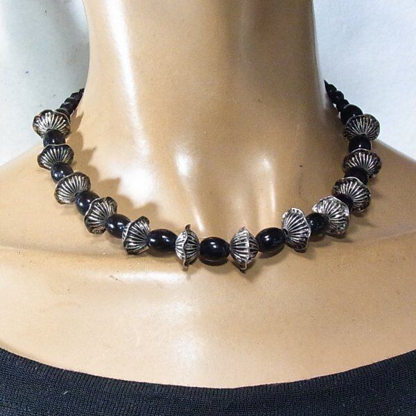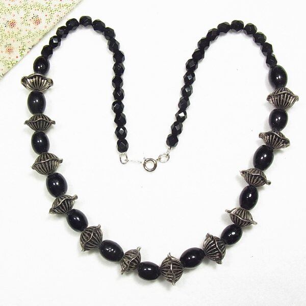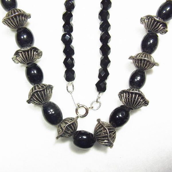黒ガラスビーズのネックレス アクセサリーのセール通販 11779N