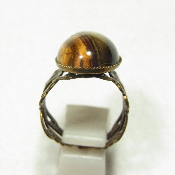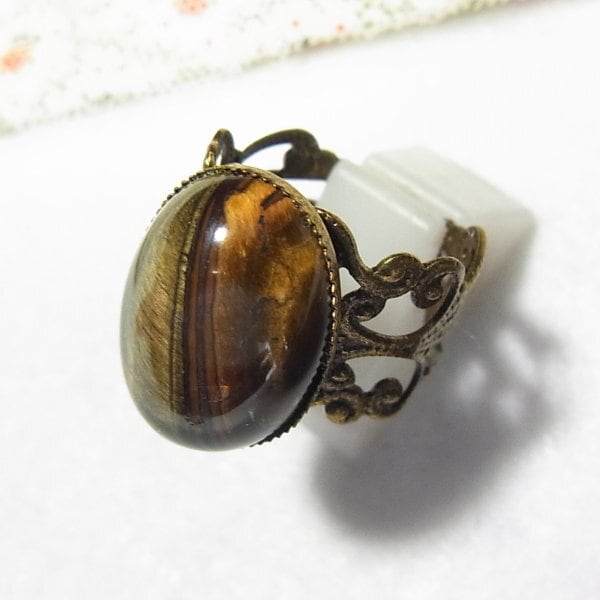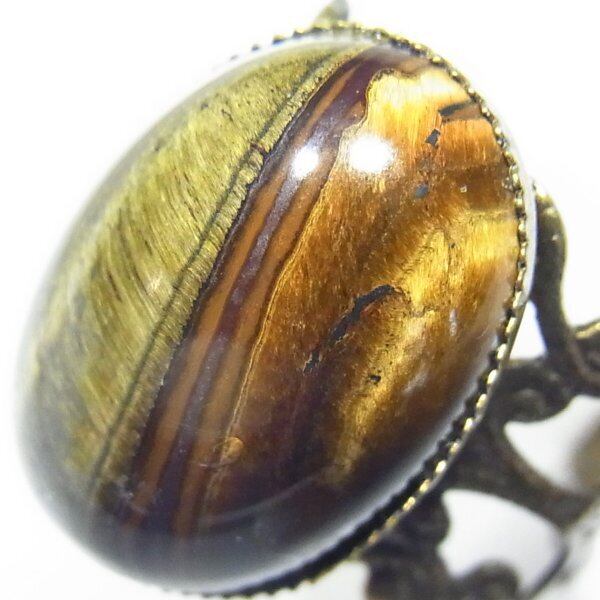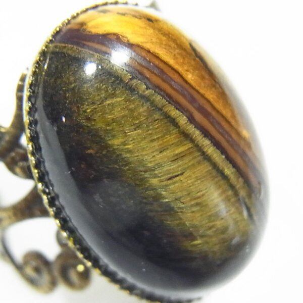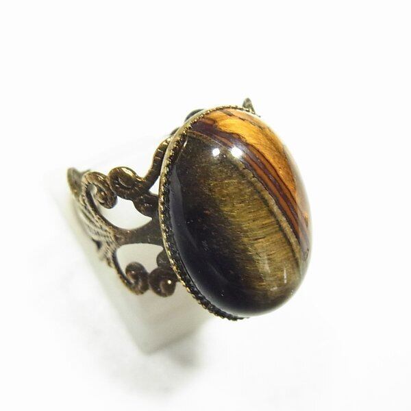 ●新品 ●天然石リング トラ目石(タイガーアイ) 13 x 18mm ブロンズカラーのメタル台 ●サイズ:アジャスタブル(フリーサイズ)