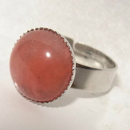 ● 天然石 チェリークォーツの石の指輪 銀色メタル 径12mm の石 キュートなピンク色の天然石 ●サイズ:フリーサイズ(アジャスタブル) ●新品
