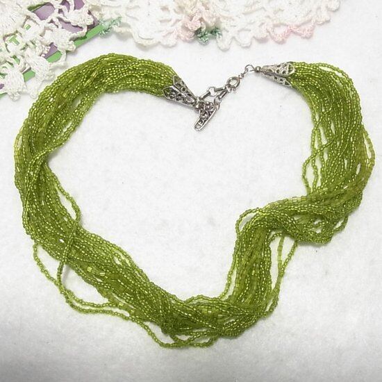 EAST 黄緑のガラスビーズ18連ネックレス コスチュームジュエリーのセール通販 7585N