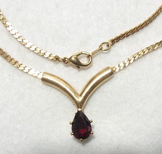 ●オールドストック新品 ●赤い硬質ガラスの石のペンダントネックレス 金色メタルチェーン 47cm 気品あふれる上品なアイテムです。