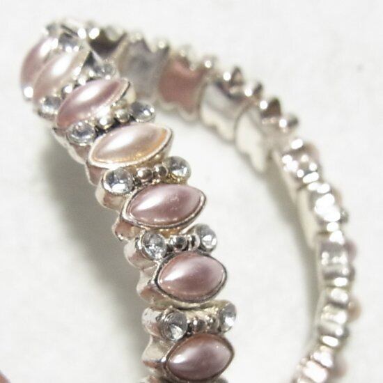 ●オールドストック新品 ●ストレッチブレスレット うすピンクのプラスティックの石 クリアなラインストーン 銀色メタル ゴムひもでストレッチします。 ムードの良いアイテムです