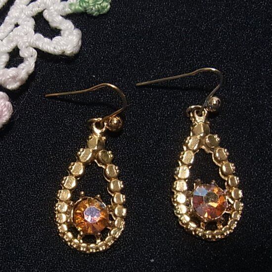 ・1990’s ・下がるティアドロップピアス オーロラブラウンのラインストーン 金色メタル きれいです アレルギー対応はしておりません