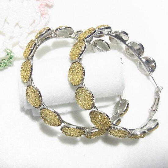 ●オールドストック新品 ●大ぶりのフープピアス 直径5.5cm 黄色いプラスティック 銀色メタル キュートなアイテム アレルギー対応はしておりません