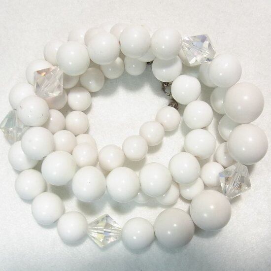 ミルクガラスのビーズネックレス ヴィンテージネックレスのセール通販 8806N