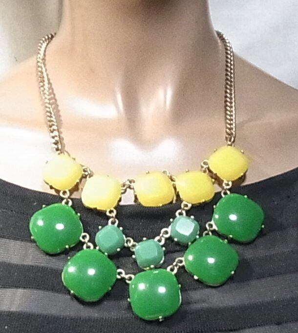 ●オールドストック新品 ●グリーン・イエローの石のボリュームネックレス プラスティックの石 金色メタル 47~54cmのアジャスタブル ポップな良いムードです。