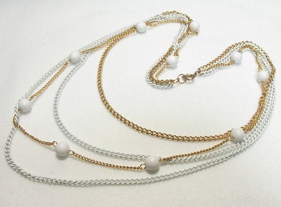 白と金色メタルチェーンの4連ネックレス コスチュームジュエリーのセール通販 9069N