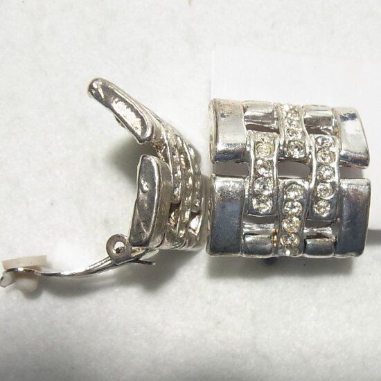 ●1990-2000’s ●クリップ式 ●四角い比較的大型のイヤリング クリアなラインストーン シルバートーンのメタル製 存在感のあるアイテムです ◆年代は当店の推定です。 。