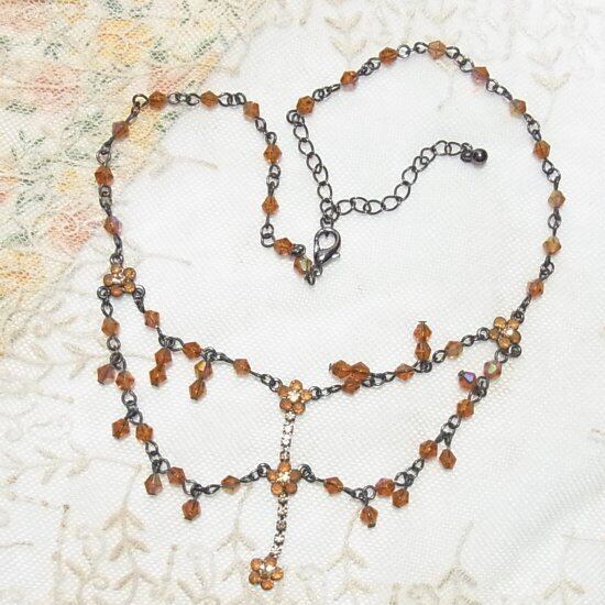 ブラウンのガラスビーズのビブネックレス コスチュームジュエリーのセール通販 9266N