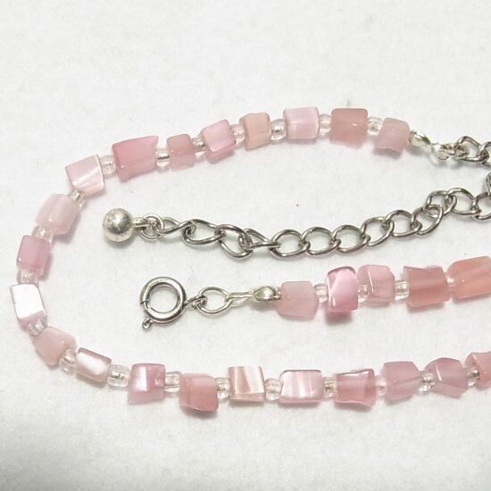 ●2000’s ●ピンクガラスのビーズネックレス 銀色メタル金具 45~53cm 清楚でキュートなアイテムです。 ◆年代は当店の推定です。 ★送料は一律250円、4000円以上お買い上げで無料です。