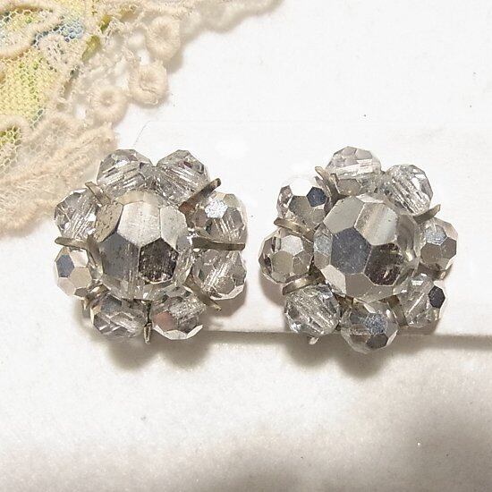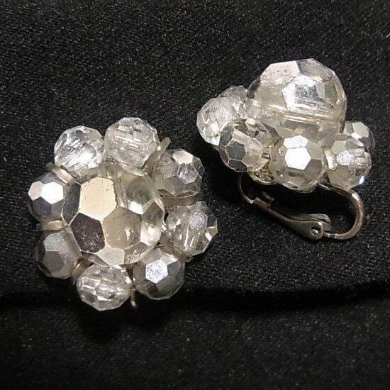 スモーキークリアなガラスビーズイヤリング ヴィンテージイヤリングのセール通販 7598E