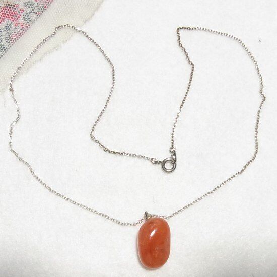 天然石カーネリアン(瑪瑙)の石のペンダントネックレス ヴィンテージアクセサリーのセール通販 9670N