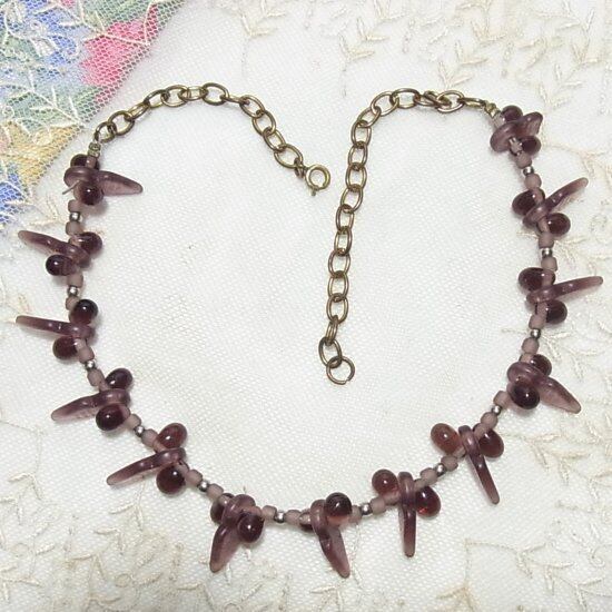 パープルガラスビーズのチョーカーネックレス ヴィンテージネックレスのセール通販 8793N