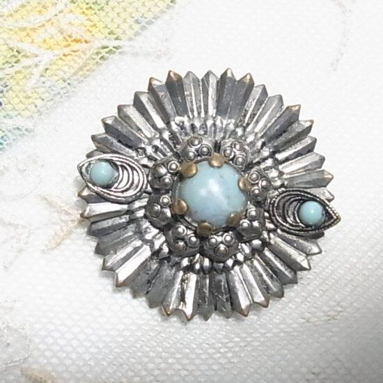 ターコイズガラスの付いたラウンドブローチ コスチュームジュエリーのセール通販 9342B